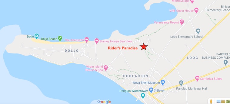 You take direction to the Municipality of Panglao (Middle Road). Once arrived in Poblacion you turn right direction Doljo. Distance from Tagbilaran about 25 km.